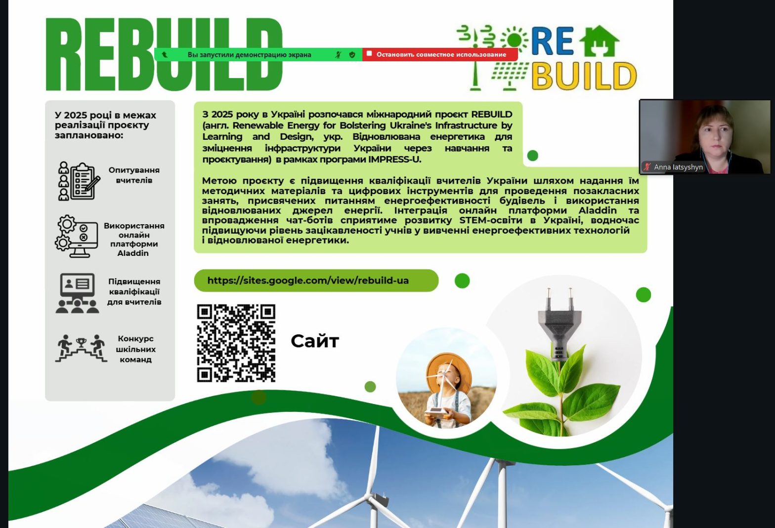 У травні 2025 році в Україні розпочато реалізацію міжнародного проєку REBUILD (Renewable Energy for Bolstering Ukraine’s Infrastructure by Learning and Design), спрямованого на популяризацію STEM-освіти та відновлюваної енергетики. Проєкт виконується в межах програми IMPRESS-U за контрактом УНТЦ №7135 та фінансується Національною академією наук США (US NAS). Над проєктом спільно працюють команди трьох країн: Детальніше про… Читати далі Круглі столи проєкту REBUILD за 2025 рік